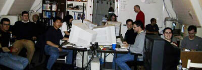 Intel generously loaned us 16 Pentium 4 1.8Ghz machines with 256MB DDR ram and GeForce 4 Ti 4600 cards for IGJ0. We would like to personally thank Kim Pallister from Intel's Developer Relations group for making this sponsorship happen, and we'd especially like to thank and praise Intel for supporting experimental game development! If only game publishers were so forward-looking!